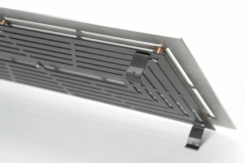 Das Design-Lüftungsgitter ist blickdicht durch versetzt angeordnete Lüftungsplatten. Mit dem stabilen Einbaurahmen wird die Montage erleichtert.