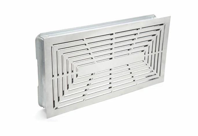 Das Design-Lüftungsgitter ist blickdicht durch versetzt angeordnete Lüftungsplatten. Mit dem stabilen Einbaurahmen wird die Montage erleichtert.