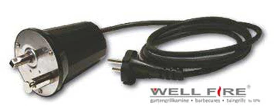 Der praktische Elektromotor wird einfach an die Steckdose angeschlossen und Ihr Braten oder Ihre Brathähnchen drehen sich ganz automatisch.