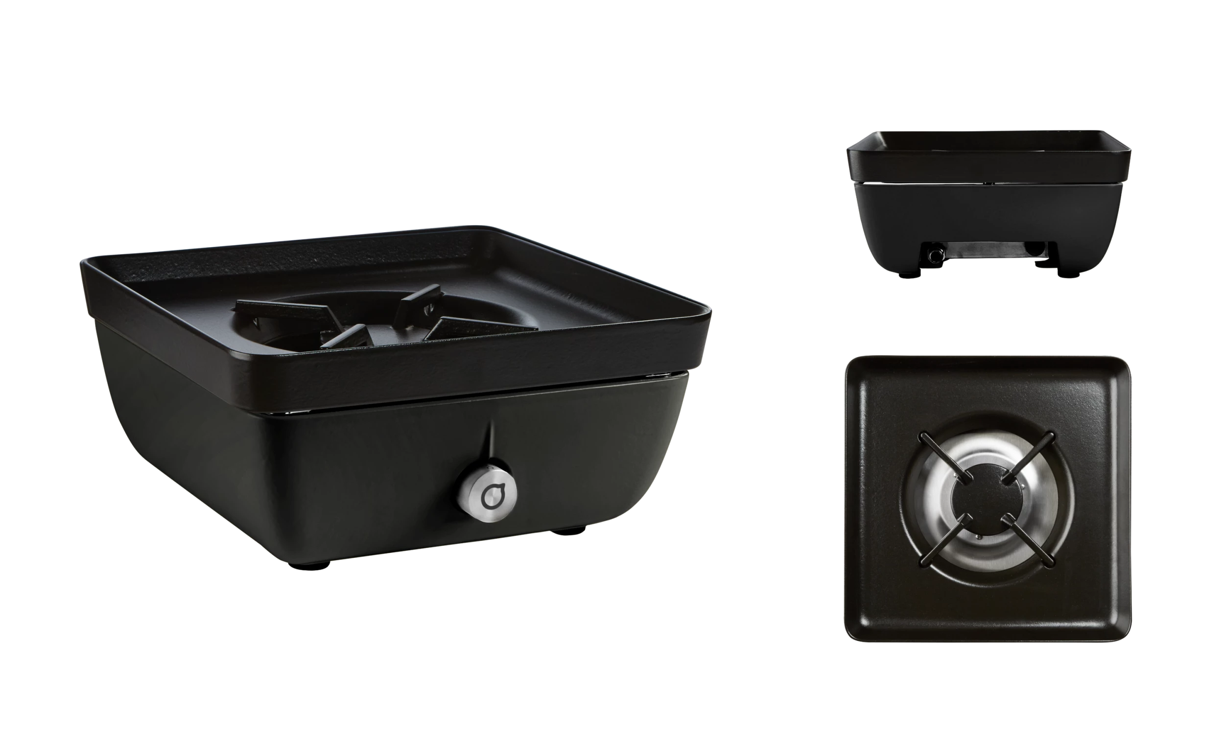 Mit einer Tankkapazität von 11 kg ist der Patio-Kocher für den Betrieb mit Propan-, Butan- und Erdgas ausgelegt.