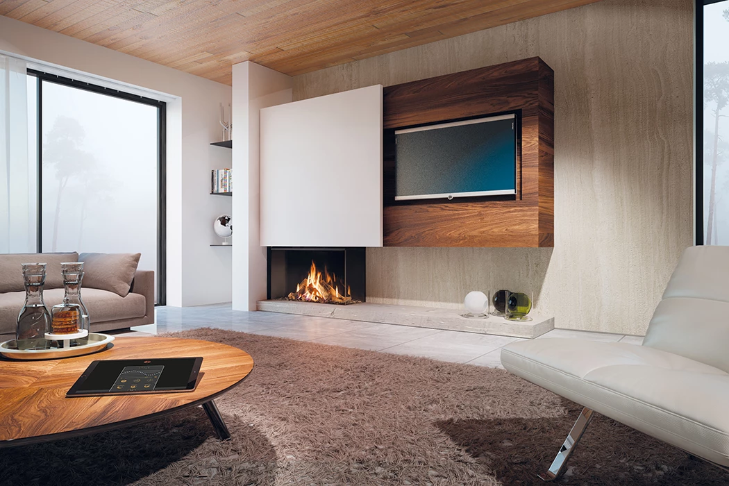 Gaskamine sind eine beliebte Wahl, wenn es darum geht, die Atmosphäre in Ihrem Zuhause zu verschönern und gleichzeitig für gemütliche Wärme zu sorgen. Der Maestro 105/2 Eco Wave von DRU ist ein 2-seitiger Eck-Gaskamin, der sich durch sein herausragendes Holzfeuer-Display auszeichnet und mit verschiedenen Interieur-Optionen sowie technischen Raffinessen begeistert.