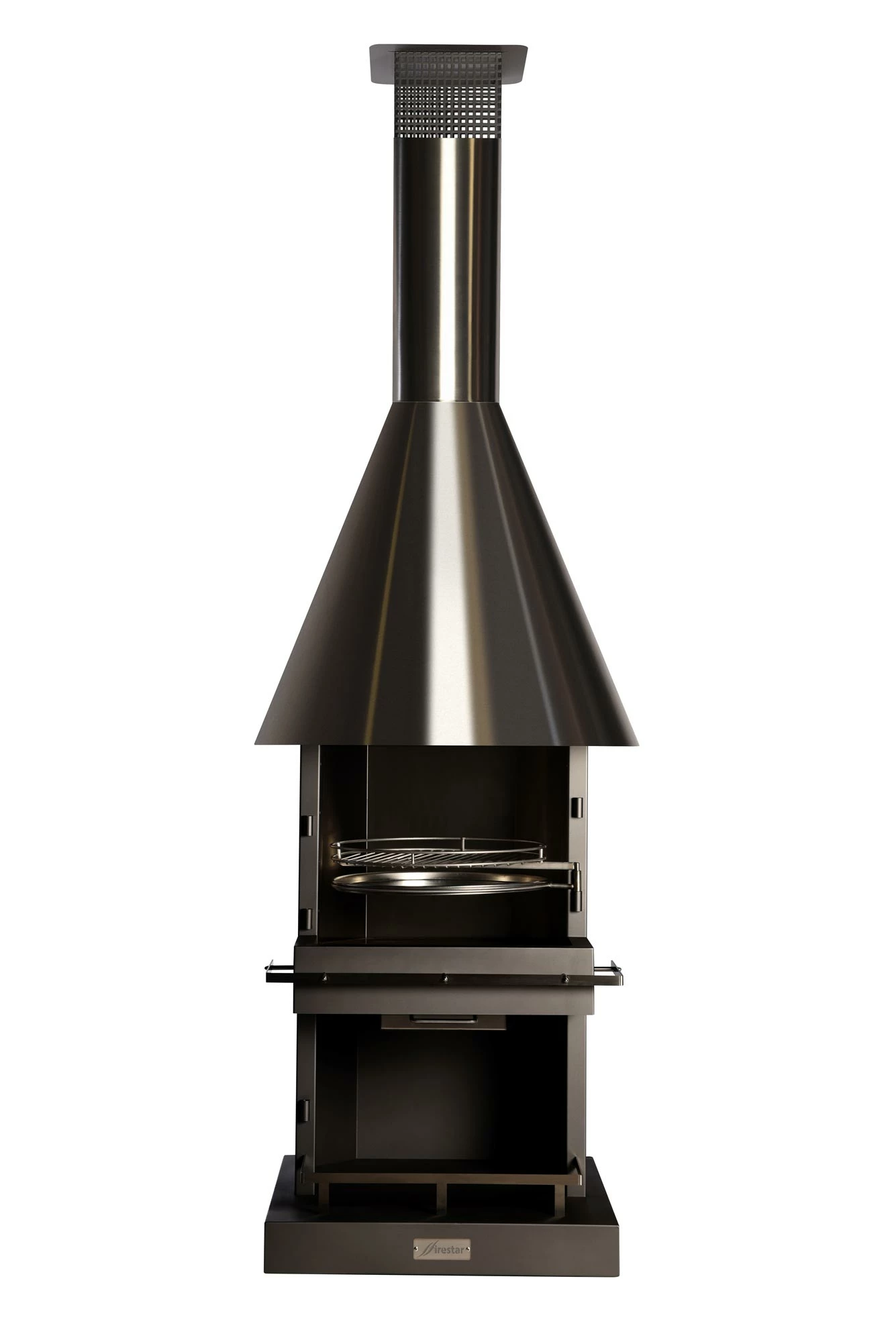Zudem ist der Kamin zu hundert Prozent aus Edelstahl. Er ist somit robust gegenüber härtesten Witterungsbedingungen und kann ohne Bedenken das ganze Jahr über draußen stehen.