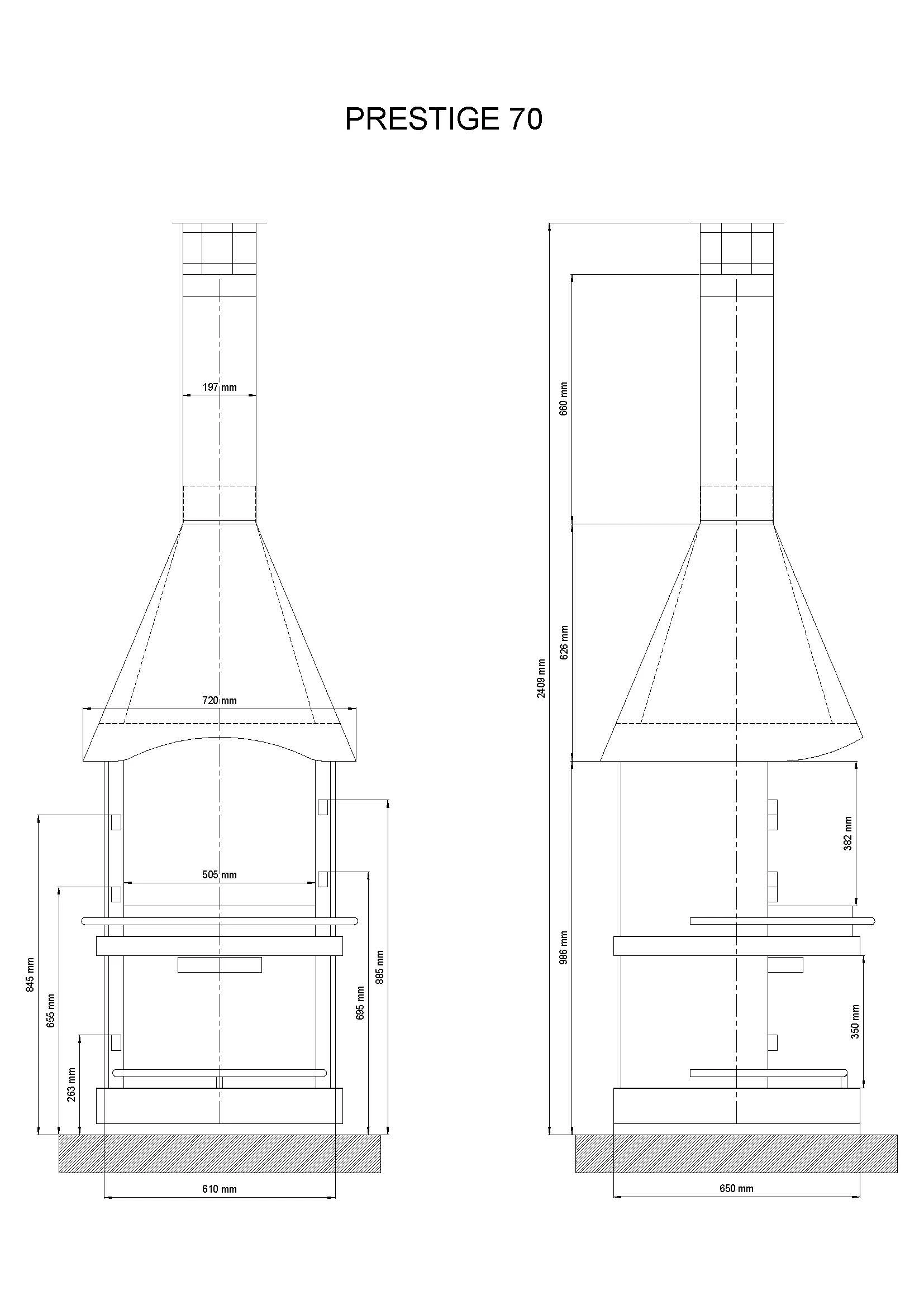 Der Grillkamin besticht durch seinen doppelwandigen Edelstahlbrennraum, sodass der Prestige 70 für ausreichende Strahlungswärme sorgt, was besonders für seine Funktion als Terrassenkamin wichtig ist. Für eine gleichmäßige Hitzeverteilung auf dem Grill sorgt der Grillmodus, was besonders wichtig ist beim Garen von Würstchen, Steaks oder Ihren Lieblingsgerichten. Das Modell wird Sie und Ihre Gäste sofort überzeugen. Das Modell kann mit Holz und Holzkohle betrieben werden.