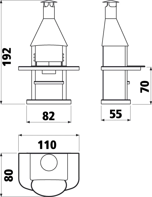 - kann mit Holzkohle und Holz (ca. 5 kg) befeuert werden