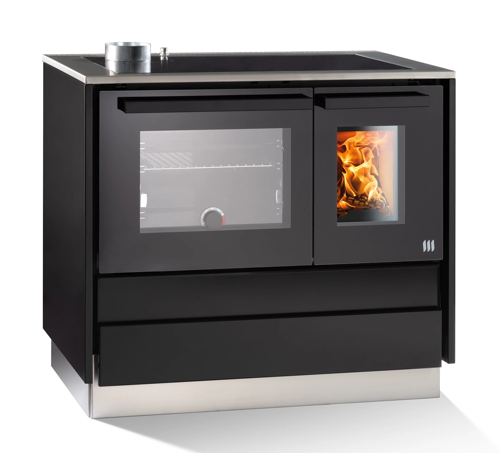 - Große und komfortable Brennstofflade ca. 38 Liter, mit Soft-Einzug und Vollauszug