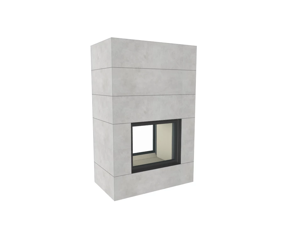 Selbstverständlich kann die natürliche Wärmebetonhülle aber auch anderweitig verkleidet werden. Eine edle Oberfläche schaffen Sie sich beispielsweise über angebaute Großkeramikteile. Dekorativ kann die Fassade auch mit Farbe oder Putz dem Raum angepasst werden. Zu beachten ist hier lediglich, dass ein hitzebeständiger Anstrich gewählt werden muss.