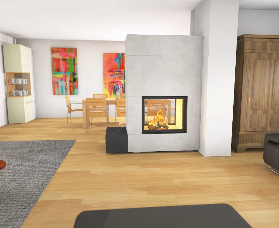 Mit der Rahmenfarbe legen Sie fest, wie Sie Ihr optisches Highlight in Szene setzen – das Flammenbild. Wählen Sie für Ihre Kaminanlage den offenen Betrieb, erleben Sie das Feuervergnügen noch intensiver. Das Knacken von Holz wird deutlicher und die ungetrübte Sicht auf das Flammenspiel lässt das Treiben im Feuerraum noch kräftiger wirken.