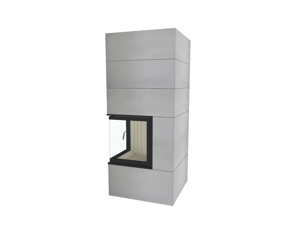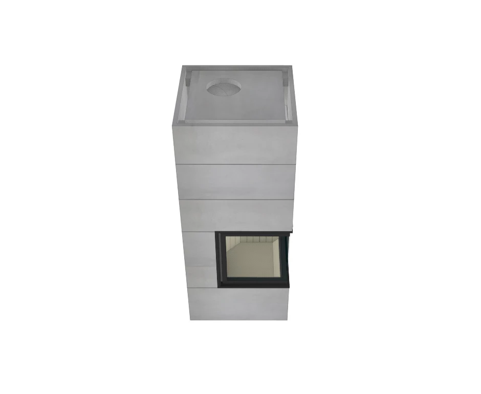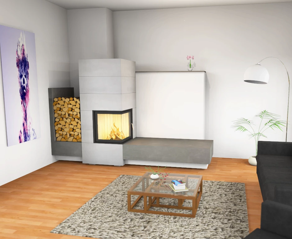 Die natürliche Sichtbeton-Verkleidung muss aber freilich nicht beibehalten werden. Mit temperaturbeständiger Farbe oder Putz können Sie die Oberfläche ganz nach Belieben Ihren Wünschen anpassen. Auch eine Veredelung mit Keramik ist denkbar. Ganz nach individuellem Geschmack können Sie Ihren Systemkamin BSK 01 farblich mit der bestehenden Umgebung verschmelzen lassen, oder ihn optisch abheben.