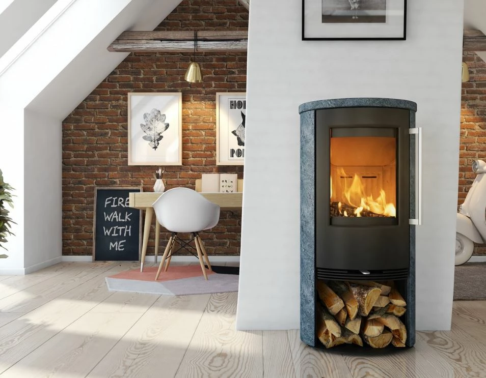 Durch die hochwertige Specksteinverkleidung an Top und Seiten profitieren Sie mit diesem Kaminofen von der besonderen Wärmespeicherfähigkeit eines Natursteins. Zusammen mit der Ellipsen-Form und der robusten Gusseisen-Tür ist der TT21 RS eine äußerst effiziente und elegante Raumheizung für jeden Wohnstil.