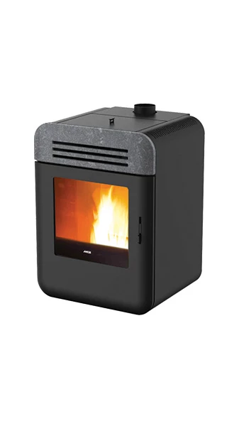 Verpackt wird die intelligente MCZ-Technologie in einem Ofenkorpus aus schwarzem Stahl, der sich dank seiner geringen Größe für jeden engen Wohnraum eignet. Das klare, zeitlose Design des Pelletofen MCZ THEMA Air wird von den abgerundeten Ecken und einem Frontgitter verfeinert, das sich in Keramik oder Serpentino variieren lässt. Die große Sichtscheibe, die sich ab einer Feuerraumtemperatur von 250 Grad selbst reinigt, bietet einen ungetrübten Blick auf das breite Flammenbild des Feuers.