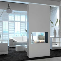 Das klare Design und die kompakte Form lassen sich variabel im Raum unterbringen, der Speicherofen kann sowohl frei stehend als auch in die Ecke oder wandseitig verbaut werden. Das Baukastensystem ermöglicht eine einfache und vor allem schnelle Montage. Mithilfe von Mineralputz, Farbe und Keramikfliesen fügt sich die Verkleidung des Kamins bei Bedarf nahtlos in das bestehende Wohninterieur ein.