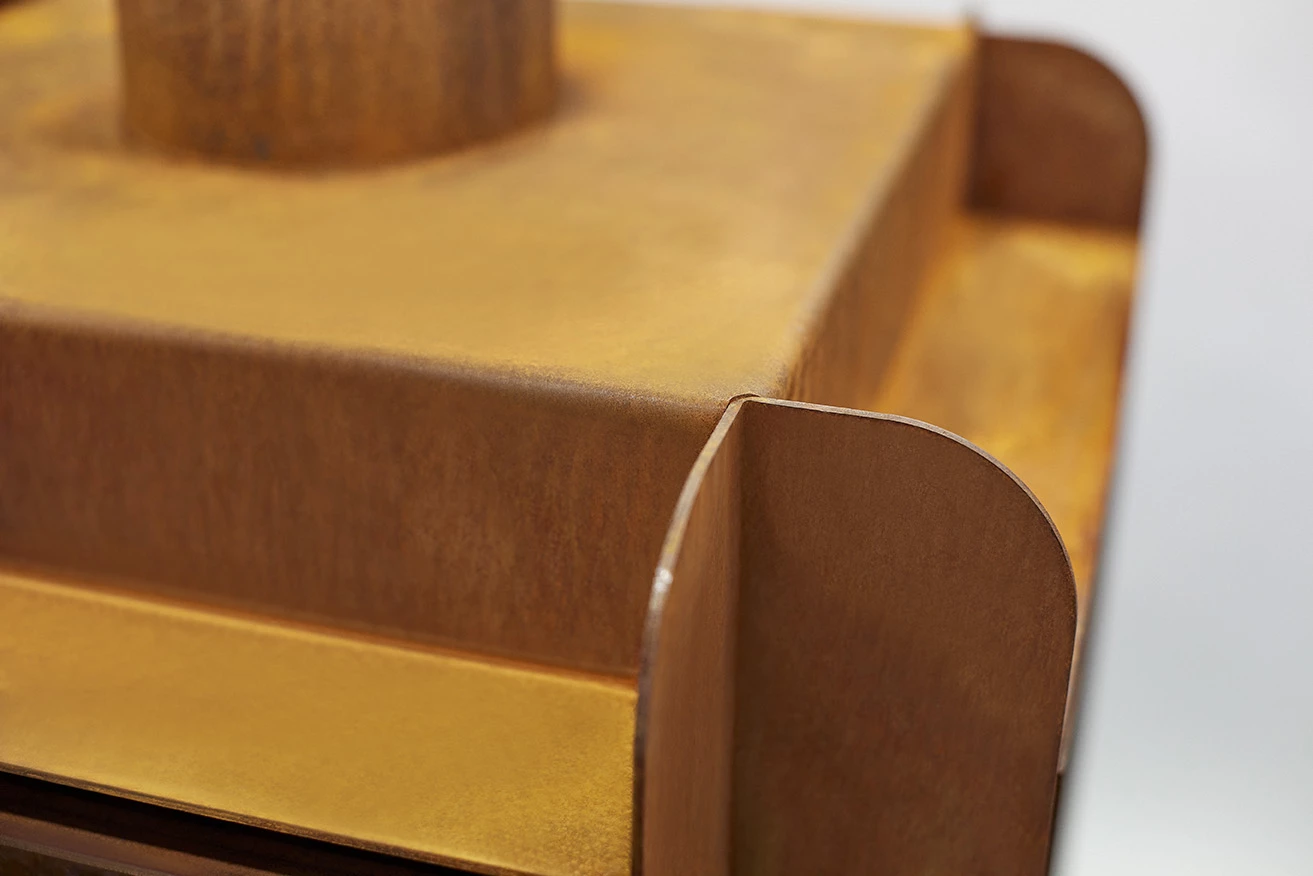 Artikel wird in stahlgrau ausgeliefert und entwickelt nach einigen Wochen eine besondere Rostpatina, die den Stahl vor der Durchrostung schützt.